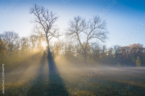 Baum und Nebel im Sonnenaufgang - Herbst Winter
