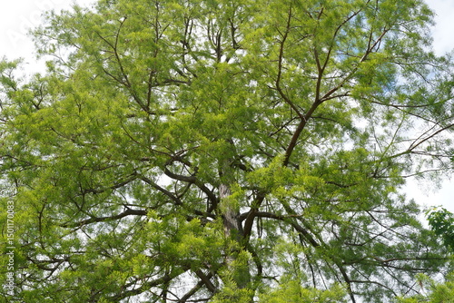 Baumwipfel einer Echten Sumpfzypresse im Frühling