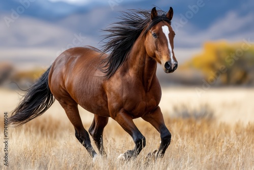 animal, autumn, bay, blur, brown, colours, country, daylight, equine, fall, farm, field, foliage, grass, grazing, herbivore, horse, landscape, farm animal, mammal, mane, mare, nature, outdoors, pasture, peaceful, photo, powerful, rural, running, scenic, season, fast horse, strength, tree, ungulate, vibrant, wild, wildlife, wind, brown horse, autumn color, wild horse