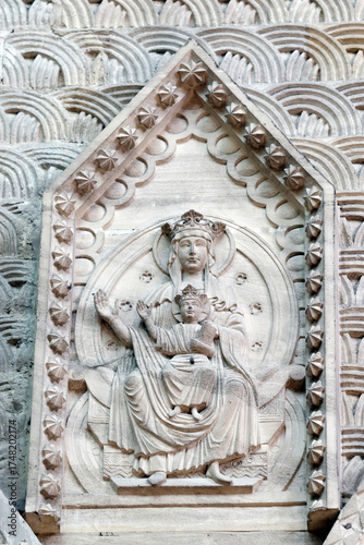 Bayeux cathedral. Virgin and Child sculpture. Bayeux. France.