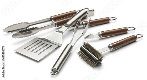 bar-b-q, grill, grilling, tool, set, spatula, tongs, fork, brush, stainless steel, utensil, cooking, food, equipment, summer, cookout, picnic, chef, kitchen, accessory, bar-b-q, isolated, white background, steel, clean, metal, preparation, food preparation