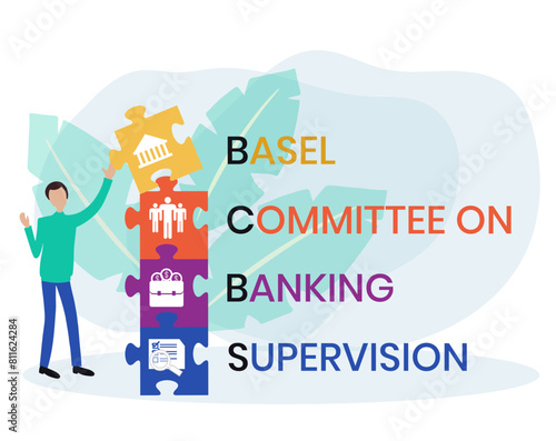 BCBS, BASEL COMMITTEE ON BANKING SUPERVISION. Concept with keyword and icons. Flat vector illustration. Isolated on white.
