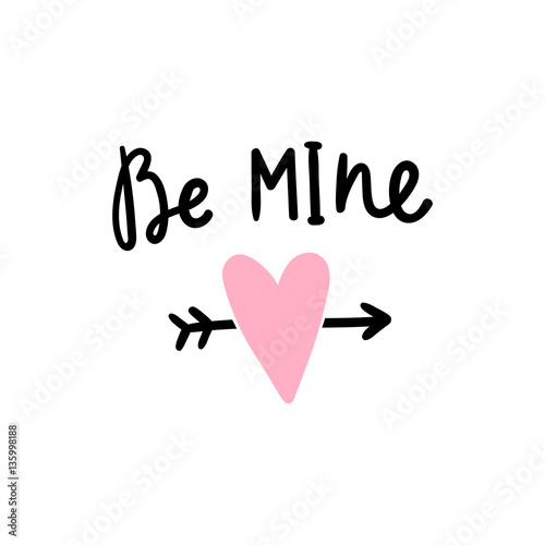 Be mine. Hand written phrase and cute pink heart. Vector illustration