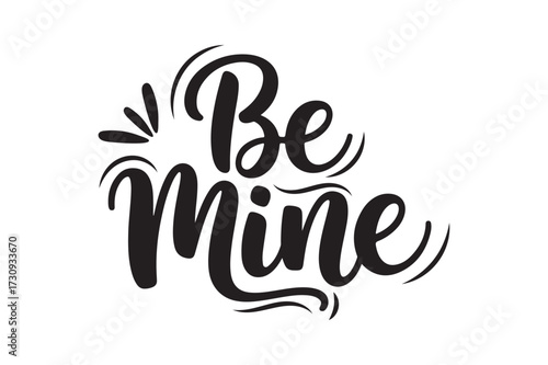 be, mine, love, romance, valentine, day, typography, handwritten, script, calligraphy, lettering, quote, phrase, romantic, sweet, affection, declaration, nubes, human relationships, couple, celebration, greeting, design, graphic, art, ink, brush, bold, black, and