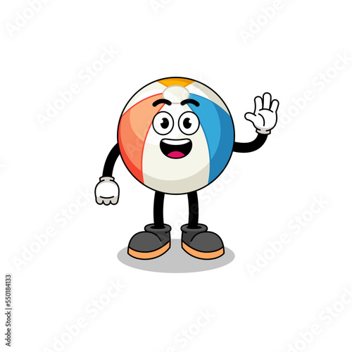 beach ball cartoon doing wave hand gesture