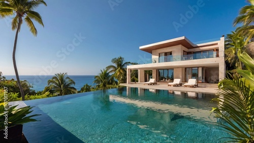 beach house, tropical, modern, architecture, luxury, coastal, contemporary, oceanfront, stylish, tropical paradise, nature, elegant, beachfront, seaview, innovative, scenic, minimalist, vacation, resort, roomy, bright, natural, chic, serene, modern architecture, tranquil, panoramic, high-end, open space, relaxing, harmony, sunlight, wave, palm tree, exotic, breathtaking, airy, paradise
