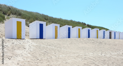 beach, blue, hut, sky, sand, house, coast, colourful, sea, building, holiday, summer, white, cabin, hut, architecture, vacation, england, door, travel, wooden, storage
