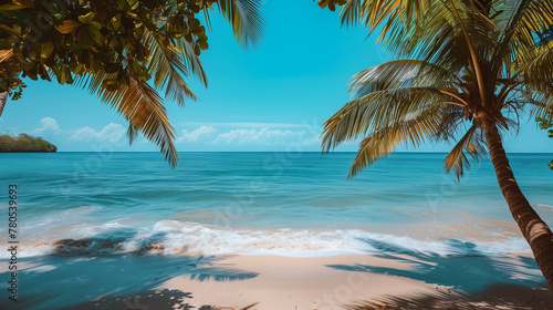 beach, tropical, landscape, illustration, exotic, background, beautiful, blue, coast, holiday, island, nature, ocean, palm, paradise, relax, resort, sand, sea, seascape, sky, summer, sun, sunny, tour tourism, travel, vacation, water, wave