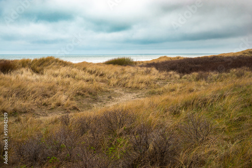 Beach landscape with reed and sand at the North Sea in the Netherlands, Wijk aan Zee near Amsterdam