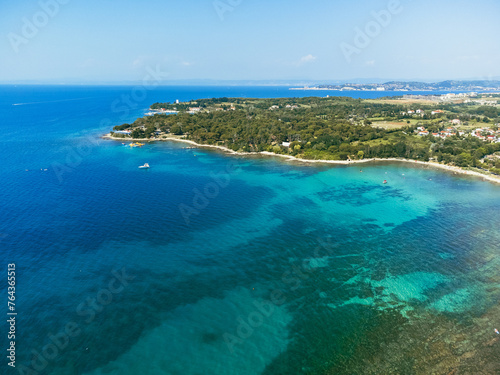 Beach, Sea Bay, Lagoon and Houses. Aerial View of Savudrija, Croatia.