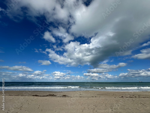dramatic, cloud, beach, ocean, sea, sand, water, wave, wave, shore, shoreline, cloud, blue, sky, depth, contrast, coast, nature, landscape, surf, horizon, travel, vacation, seascape, puffy