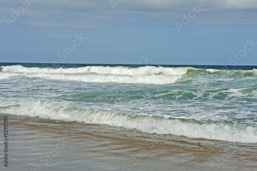 beach, north carolina, atlantic ocean, outer banks, wave, frothy, bubble, sand, sea, us, landscape, water's edge, surf, outdoors, nature, seascape, coastline, scenic, tranquil scene, water, blue, sky, cloud