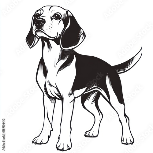 beagle, puppy, dog, pet, animal, canino, monochrome, illustration, vector, graphic, white, background, design, cute, adorable, sweet, friendly, loyal, happy, playful, funny, smart, intelligent, alert, watchful, faithful, companion, breed, hound, hunting, portrait, image, picture, art, drawing, vignetting, line art, black, and, simple, elegant, classic, retro, vintage