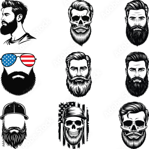 Beard Man Bundle, Beard Clipart, Beard Hat Svg, 4th of July Svg