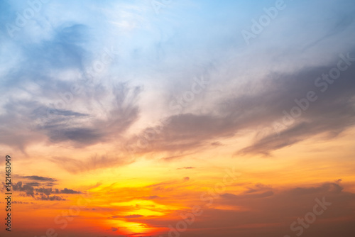 Beautiful , luxury soft gradient orange gold clouds and sunlight on the blue sky perfect for the background, take in evening,Twilight, Large size, high definition landscape photo