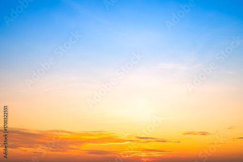 Beautiful , luxury soft gradient orange gold clouds and sunlight on the blue sky perfect for the background, take in evening,Twilight, Large size, high definition landscape photo