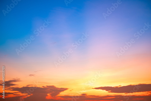 Beautiful , luxury soft gradient orange gold clouds and sunlight on the blue sky perfect for the background, take in everning,Twilight, Large size, high definition landscape photo