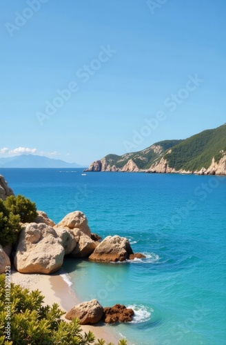 Beautiful alpine lake surrounded by steep mountains and green meadows, crystal-clear water reflecting the landscape Concept: alpine lake, natural beauty, peaceful scenery, mountain reflections, outdoo