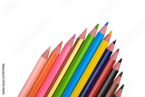 Beautiful arrow pattern made with some different wood pencil crayons on white background