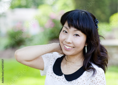 asian, chinese, japanese, korean, ethnic, brunette, 20s, 30s, adult, attractive, beautiful, beauty, natural, female, pretty, healthy, young, 1, person, pose, relaxed, woman, girl, cute, fresh, lady, portrait, model, elegant, lovely, smiling, smile, happy, happiness, pleased, joyful, joy, positive, outside, outdoors, summer, head shot, copy space, carefree, lifestyle