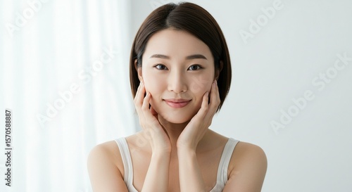 woman, asian, portrait, beauty, skin, face, young, girl, model, beautiful, care, female, person, healthy, lifestyle, pretty, health, make-up, cosmetic, clean, natural, wellness, attractive, elegant, fresh, youth, touch, hand, shoulder, hair