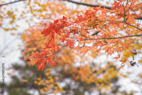 Beautiful autumn landscape.Colorful foliage in autumn.Falling maple leaf seasons.Maple leaves turn yellow, orange, red in autumn.