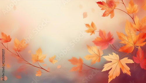 beautiful autumn-themed painting with autumn leaves and soft abstract background with copy space