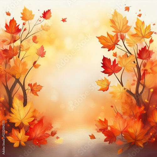 beautiful autumn-themed painting with autumn leaves and soft abstract background with copy space