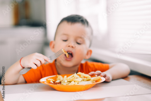 diet, food, fried, meal, potato, unhealthy, chips, caucasian, dinner, fat, young, youth, beautiful, beauty, childhood, children, home, orange, plate, t-shirt, greedy, happy, fork, sauce, day, light, window, soft, cholesterol, cookery, children, fast, son, profile, portrait, enjoy, finger, high-calorie, fun, man, epicure, summer, fats, sun, children, pretty, lunch, delicious, looking, kindergartner