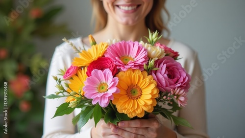 Beautiful bouquet for Mother's Day, Vibrant floral arrangement, Mother holding flowers, Gift of nature
