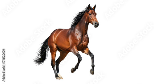 Beautiful brown horse running in a gallop isolated PNG with Transparent Background