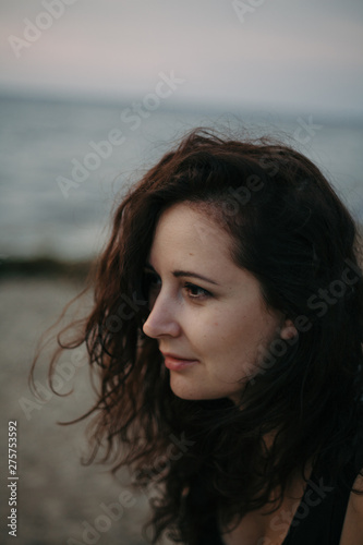 girl, young, cute, beautiful, nature, summer, spring, shirt, stylish, red, hair, long, pleasure, portrait, romance, falling in love, fat, curvy, dark hair, big, overweight, expectation, hope, inspiration, poetic, curl, coiffure, elegant, blue, outdoors, make-up, rest, travel, walk, closeup, emotion, wind