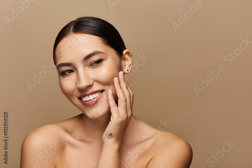 woman, beautiful, young, brunette, smile, beauty, portrait, happiness, candid, natural, serene, joy, skin, elegance, charme, expression, fashion, style, health, grace, confidence, warmth, lifestyle, make-up, inspiration, friendly, aesthetic, soft, feminine, trendy, pose, carefree, glowing, hair, thought, intimacy, joyfulness, calm, fresh, allure, kindness, sunlight, ambience, graceful, relaxing, key