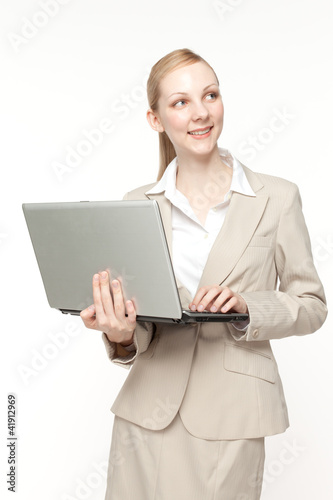 woman, business, computer, suit, white, personal computer, young, cyberspace, ol, mail, corporation, smile, blond, notebook, laptop, youth, career woman, work, people, smile, sweet, beauty, european, american, german, french, russian, british