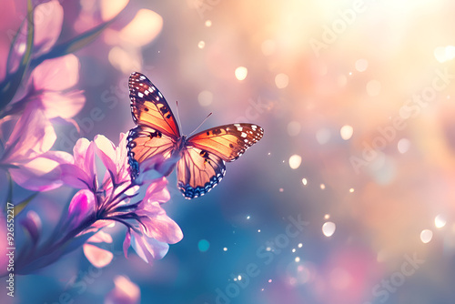 butterfly, cherry blossom, selective focus, soft light, nature, springtime, delicate, dreamy, magical, closeup, floral arrangement, pink flower, garden, enchanting, peaceful, romantic, serene, charming
