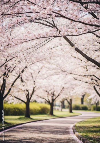 Beautiful Cherry Blossom Trees Along Pathway in Springtime