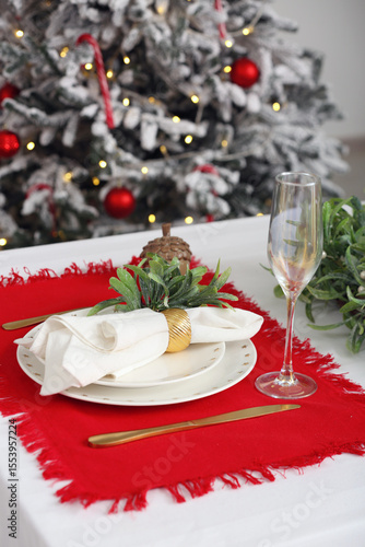 beautiful, christmas, closeup, dish, kitchen, setting, table, 2024, bokeh, celebration, clean, december, decor, design, dining, dinner, crockery, domestic, drink, eat, eve, event, festive, food, greeting, happy, holiday, home, indoor, interior, meal, merry, napkin, new, nobody, object, party, plate, red, season, served, serving, stylish, tableware, traditional, white, winter, christmas
