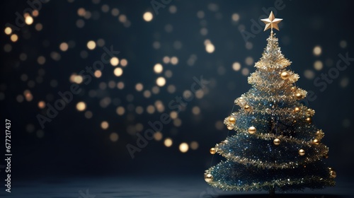 beautiful Christmas tree with Christmas lights, glass mosaic, shiny and glittery, dark blue background, copy space