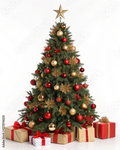 christmas, tree, holiday, festive, decoration, ornament, gift, present, celebration, winter, decor, red, gold, traditional, light, star, home, christmas, christmas, merry, jolly, classic, seasonal, sparkle, cosy, greenery, beautiful, joyful, santa, warmth, gift, ball, box