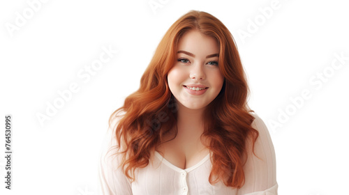 Beautiful, chubby teen girl, 18 years old, smiling, looking at the camera isolated on transparent and white background.PNG image.