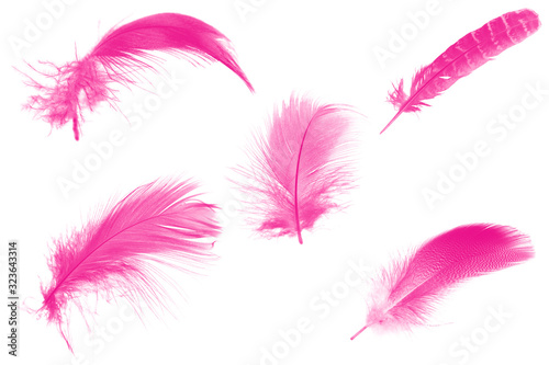 Beautiful collection pink magenta feather isolated on white background