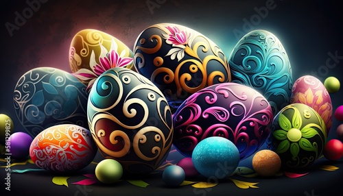 Beautiful Colorful Artistic Designer Easter eggs background design for Desktop Background or Digital Device, Holiday Celebration of Happiness, Joy, Cheerfulness generative AI