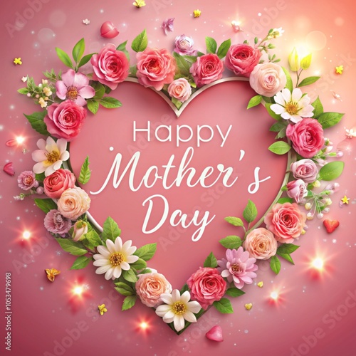 Beautiful creative cards with a picture of a heart framed by flowers and the inscription: "Happy Mother's Day."