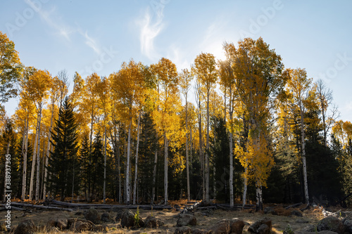 arizona, flagstaff, america, autumn, blue skies, daytime, exterior, fall, autumn color, famous, foliage, forest, landscape, leaf, morning, natural, nature, no people, october, rural, scene, season, sunny, travel, tree, us, us, yellow