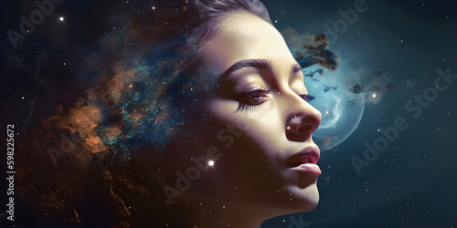 female, face, universe, cosmos, space, pretty, eye, woman, young, beauty, girl, science, astronomy, star, galaxy, nebula, background, outer, night, sky, starry, way, lactic, abstract, deep, planet, earth, fantasy, orbit, interstellar, blue, black, nature, creation, dark, forever, concept