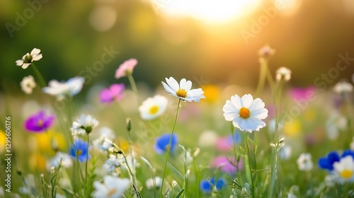Beautiful field of colorful flowers in sunlight showcasing nature's vibrant beauty and peaceful atmosphere : Generative AI