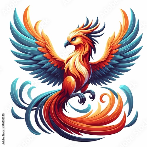 Beautiful Fire Phoenix bird flying vector illustration isolated on a white background