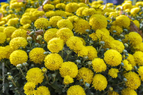 Beautiful floral background of chrysanthemums in sunny weather.
