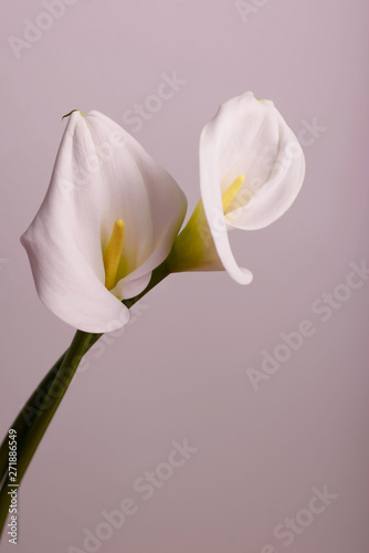 Beautiful flowers - calla on a gray background. Place for inscription. Postcard.