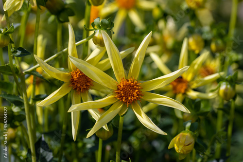 Beautiful flowers in a public park in Frankfurt, Hesse at a sunny day in summer.